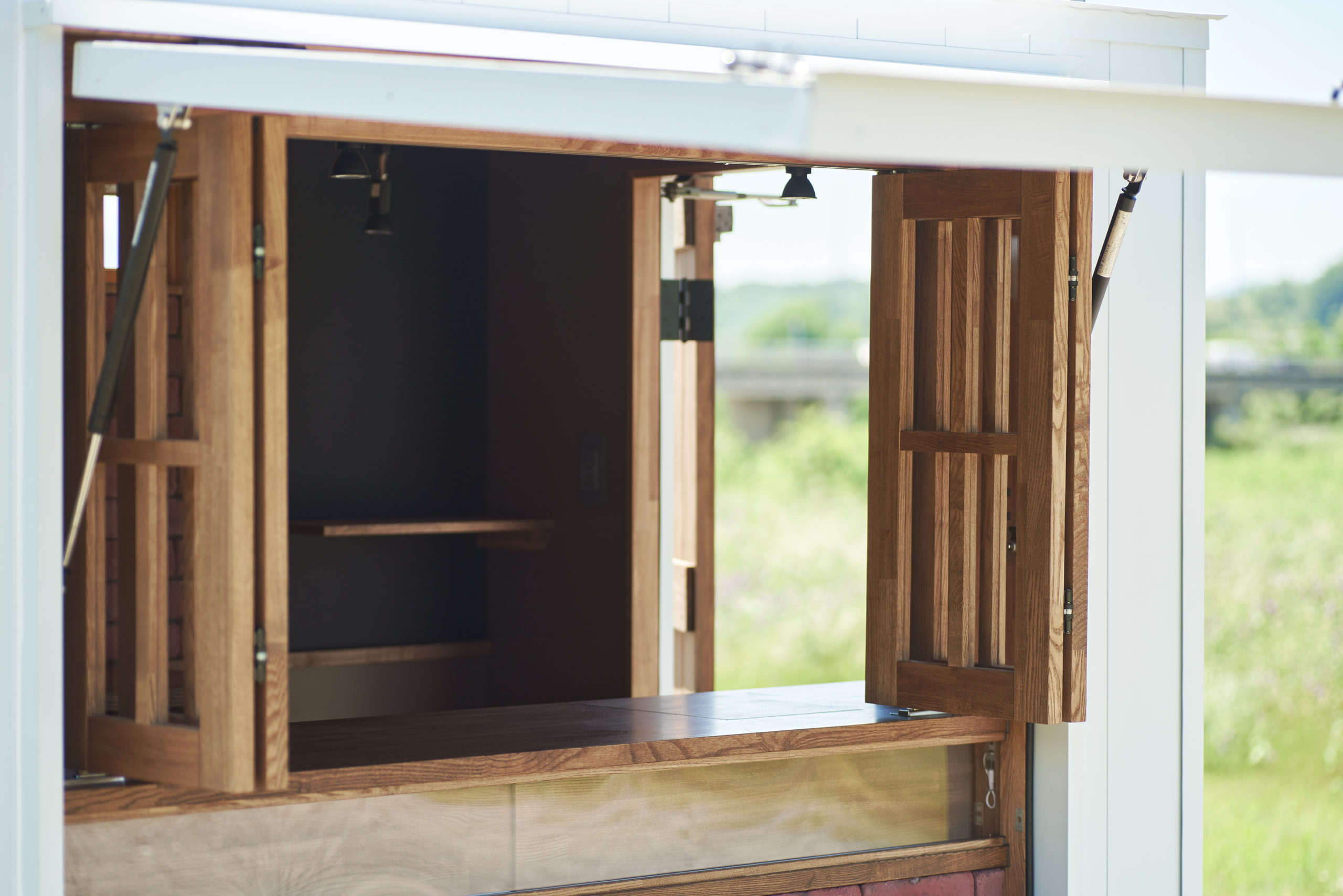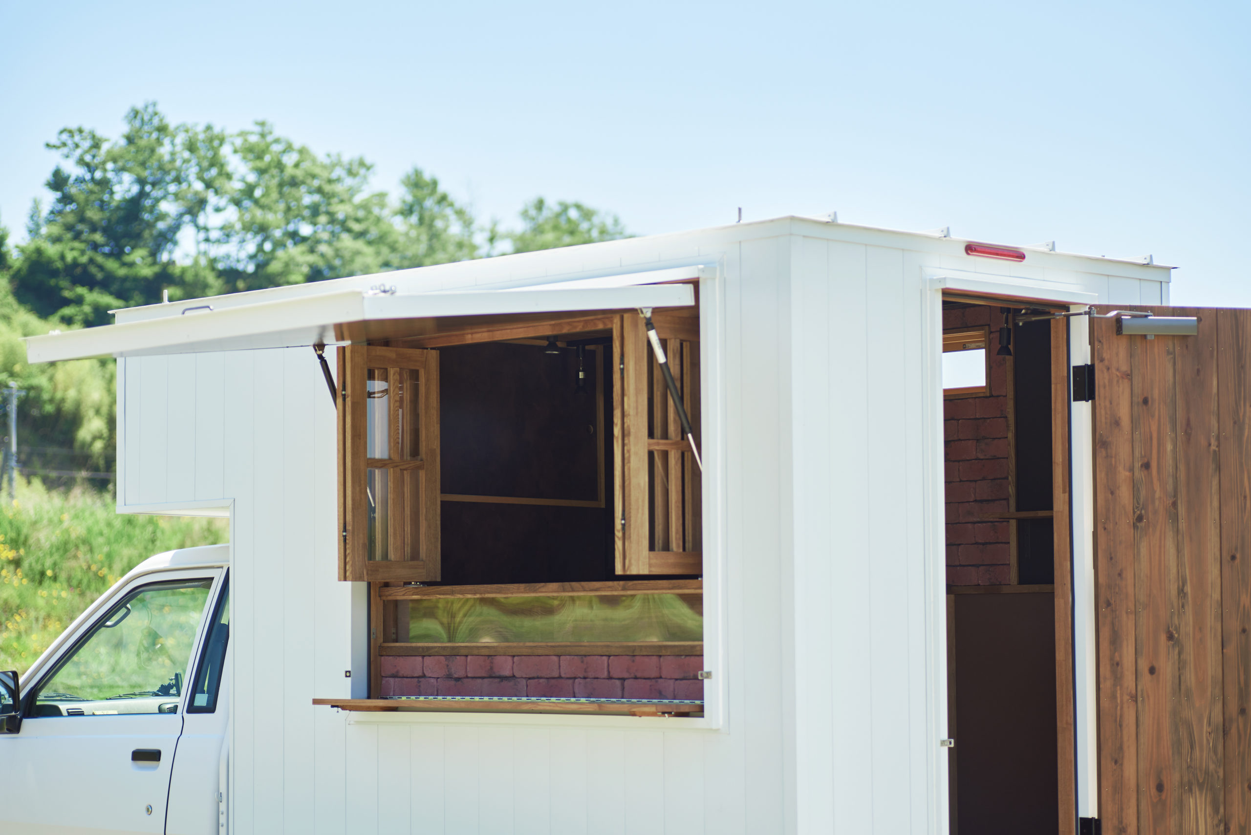 全体的に明るい色を車内外ともに、起用したセミオーダーのキッチンカーです。