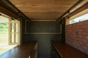 デザイン設計費、中古車両費、 <内装部>木枠組み、電気工事、断熱材(壁・天井)、内装/天井仕上げ、床仕上げ、造作物(内側作業棚、外側カウンター、基本収納)、跳ね上げ扉/販売窓口、水回り(2層シンク)、換気扇、冷蔵庫、ライティングレール、スポットライト、デザイナーセレクト照明、アルミサッシ窓、塗装、 <外装部>車両塗装、装飾(後方/販売窓口側)<その他>8ナンバー取得代行、陸送費(200km圏内)、産業廃棄物費等